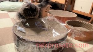 ピッカピカの爪とぎがうれしいのか、新しいほうが気に入ったらしいさとちゃん。