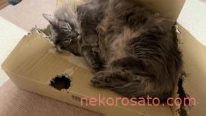 コロもさともテープを貼った段ボールに寝てくれなくなったので、慌ててはがして元に戻します。